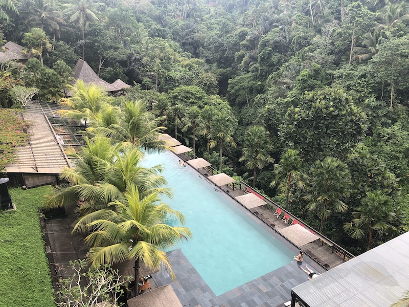 O Jungle Fish Club é um programa super descolado para quem tem mais tempo em Ubud. É um lugar para se passar uma tarde e curtir esta piscina maravilhosa junto a selva.