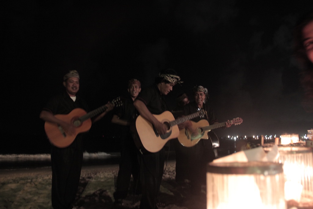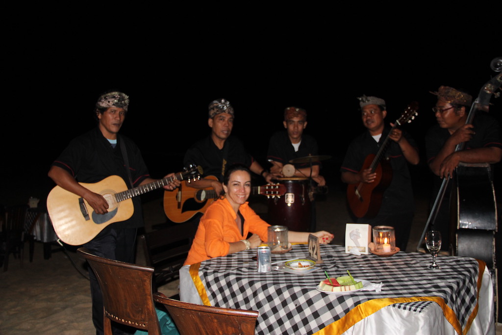 É uma praia para ser visitada à noite, isso mesmo. É que ela é cheia de restaurantes com mesas e cadeiras na areia. O ideal é após ir no templo de Uluwatu, emendar com um jantar na praia de Jimbaran e curtir um jantar ao som dos músicos locais que vem tocar nas mesas. É bem divertido. Eu e Iris demos muitas risadas neste dia, pois ao chegarmos no local, percebemos que a maioria dos clientes eram casais e era um jantar mais romântico… ela começou então a tirar sarro da situação e foi muito engraçado a nossa noite!