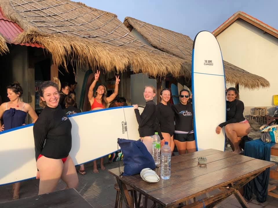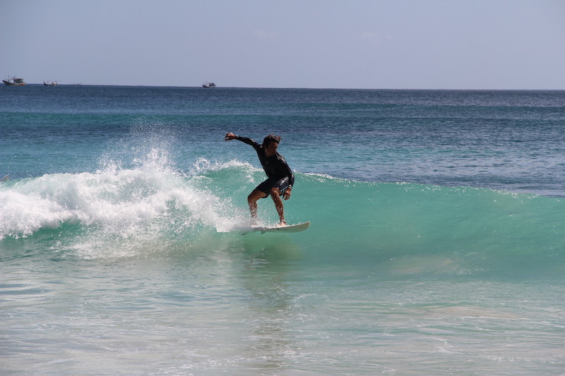 Bali é conhecida por ter praias perfeitas para a prática de surf. Tanto em Kuta, como em Canggu você pode encontrar várias escolas de surf e tomar aulas avulsas. Eu tentei me aventurar alguns dias, mas é muito puxado e cansativo para quem está começando. A cor do mar não é tão bonita em Bali por causa da areia escura, com exceção das praias mais ao sul que já possuem uma água mais clara.