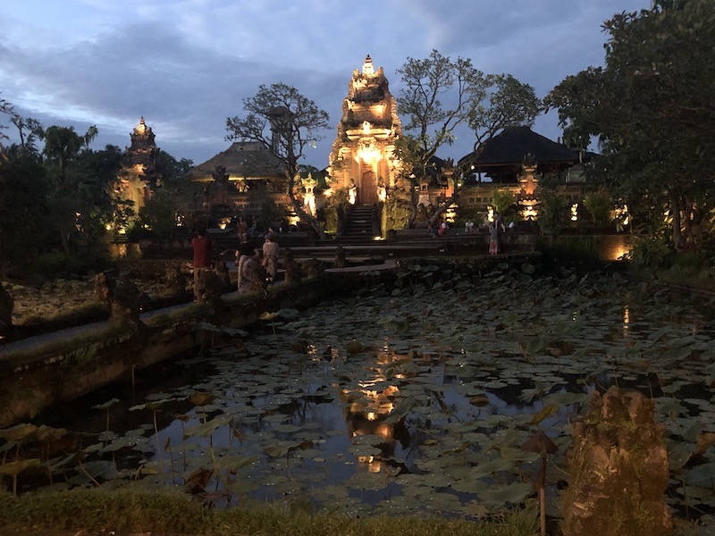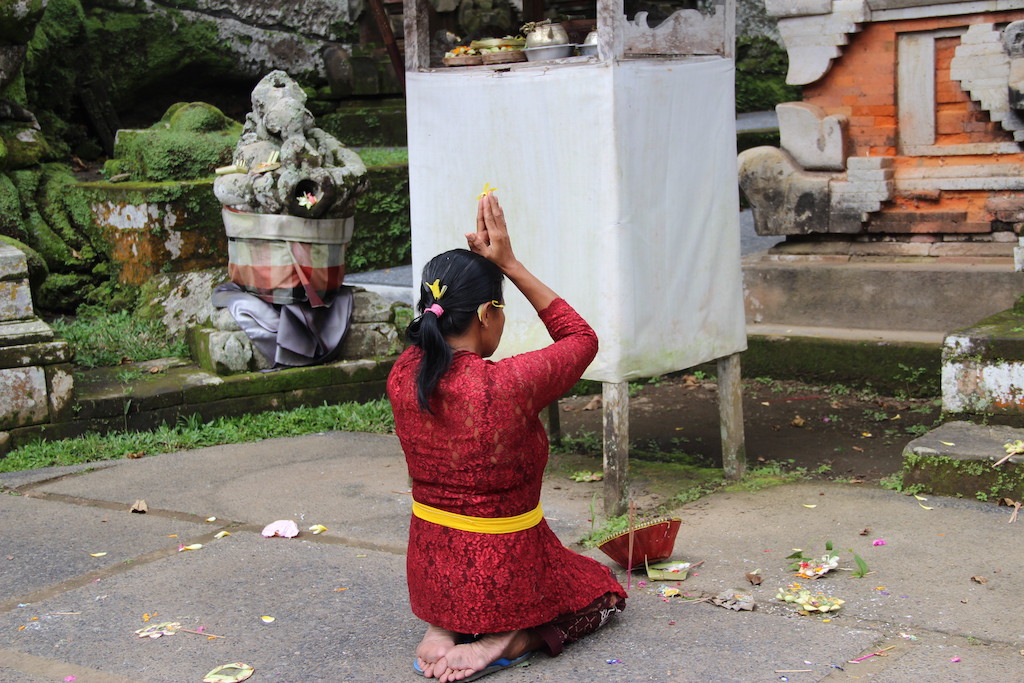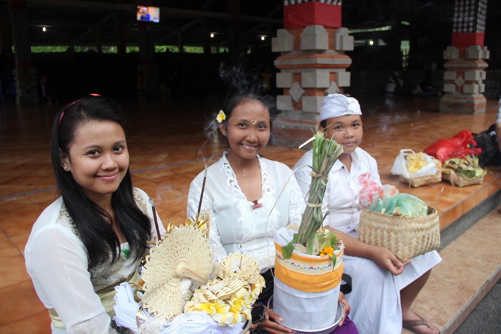 Os Balineses tem profundas raizes espirituais e religiosas e fazem questão de manter sua cultura viva, por meio de oferendas e rituais praticados diversas vezes por dia. Talvez por isso são considerados um povo encantador que estão sempre com um sorriso no rosto para lhe receber. Sua religião é o Hinduísmo Balinês, uma mistura de Hinduismo, Budismo e outras crenças antigas. A Arquitetura e as oferendas na porta das casas e dos templos, as esculturas de deuses e figuras mitológicas espalhadas por todo lado dão um ar sagrado a praticamente tudo . E como é bom andar pela cidade e ir descobrindo os milhares de templos existentes.