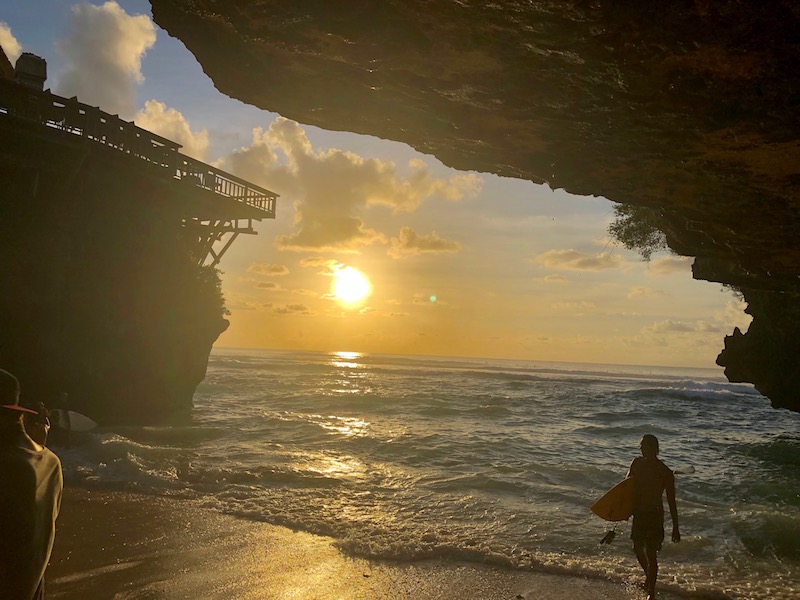 Uluwatu não tem propriamente uma praia, é um dos points mais cotados pelos surfistas também. Porém tem o bar Single Fin. Cheio de gente bonita, é um lugar disputadíssimo para o pôr do sol. Chegue cedo para dar uma volta na parte debaixo que tem uma prainha e uma caverna que vale a pena conhecer. Na maré baixa, até da para nadar pois formam-se umas piscinas naturais, caso contrário o mar é meio agitado. Va com roupa de nadar pois o bar tem uma piscina incrível com borda infinita.