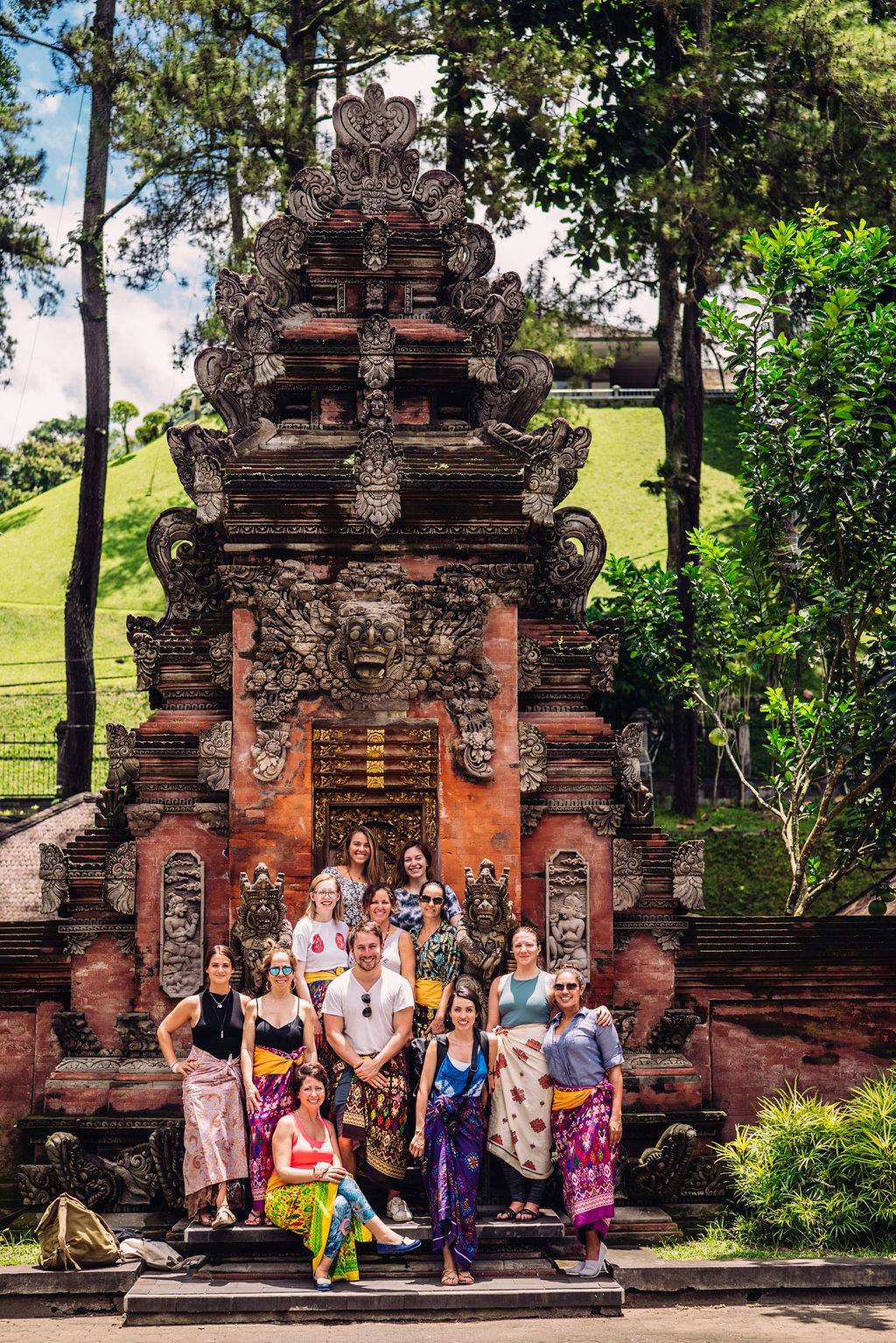Para visitar os templos de Bali é obrigatório o uso de Sarong, uma saia vai até o pé e tem uma forma especial de ser amarrada.É distribuído gratuitamente e eles ajudam a colocar.